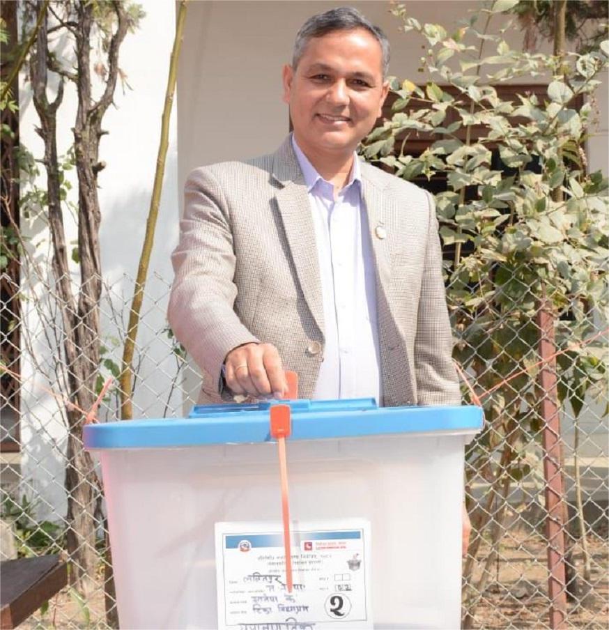 गृहमन्त्री अर्यालले ललितपुर–३ मा गरे मतदान