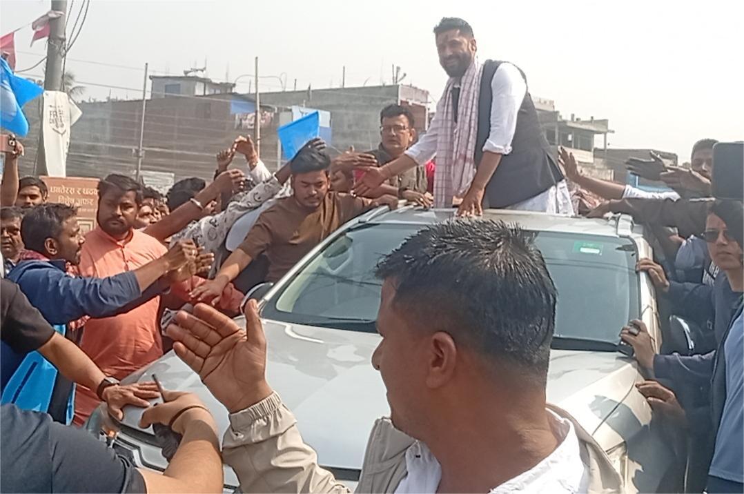 गोलबजारमा रवि लामिछानेको भव्य स्वागत, परिवर्तनको नाराले तात्यो बजार