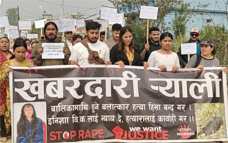 काठमाडौं । सुर्खेतकी १६ वर्षीया इनिशा विकको मृत्यु प्रकरणलाई लिएर देशभर आक्रोश बढ्न थालेको छ। घटनाको निष्पक्ष छानबिन र दोषीलाई कडा कारबाहीको माग गर्दै बुधबार काठमाडौंको माइतीघर मण्डलामा प्रदर्शन गरिएको छ।